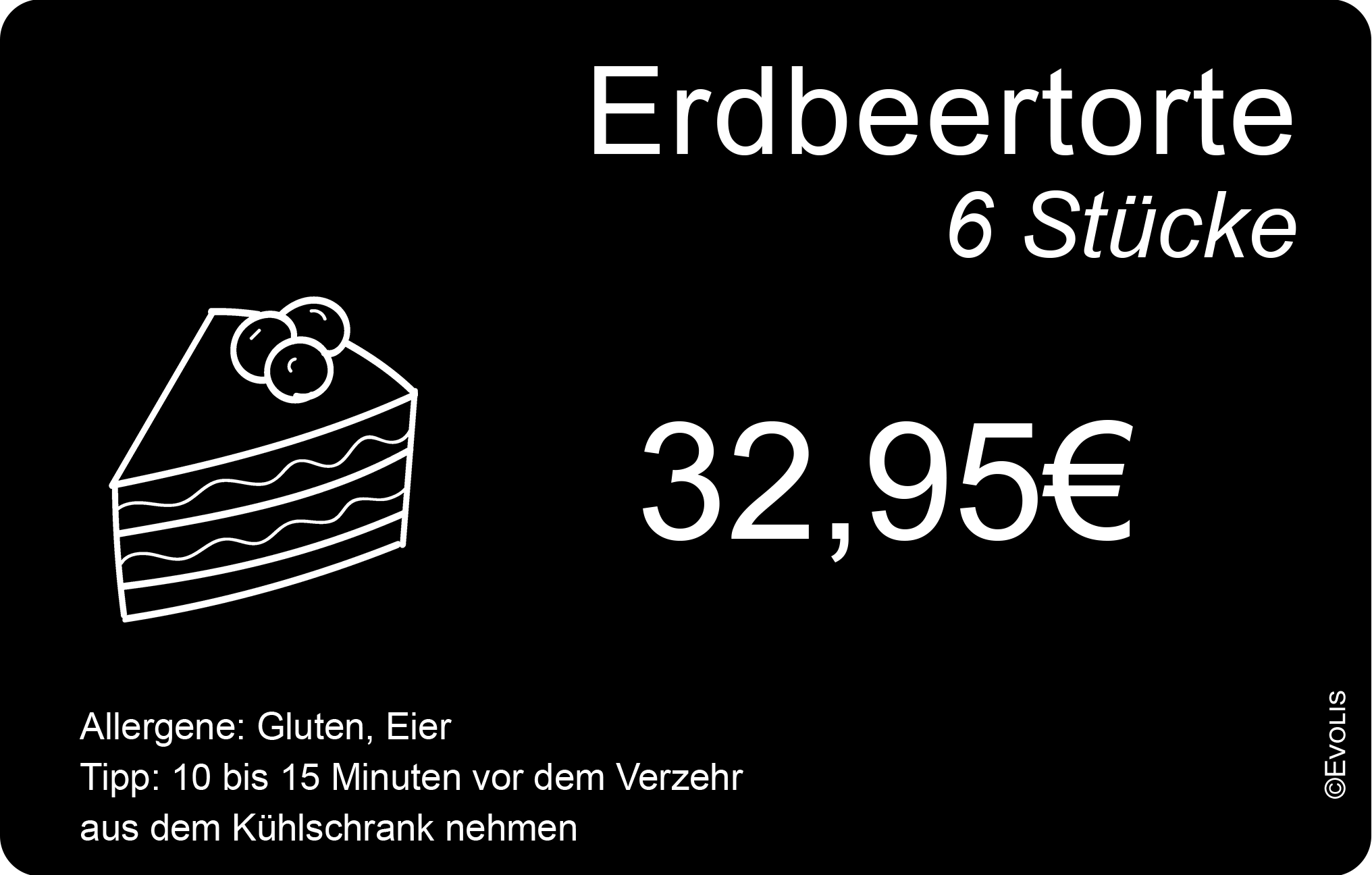 Mit Edikio Price Tag erstellen Sie ansprechende, einheitliche und vollständig personalisierbare Preisschilder für Bäckereien. Diese robusten und hygienischen Preisschilder aus PVC-Karten stärken das professionelle Erscheinungsbild Ihres Geschäfts und heben Ihre Produkte in der Auslage optimal hervor.