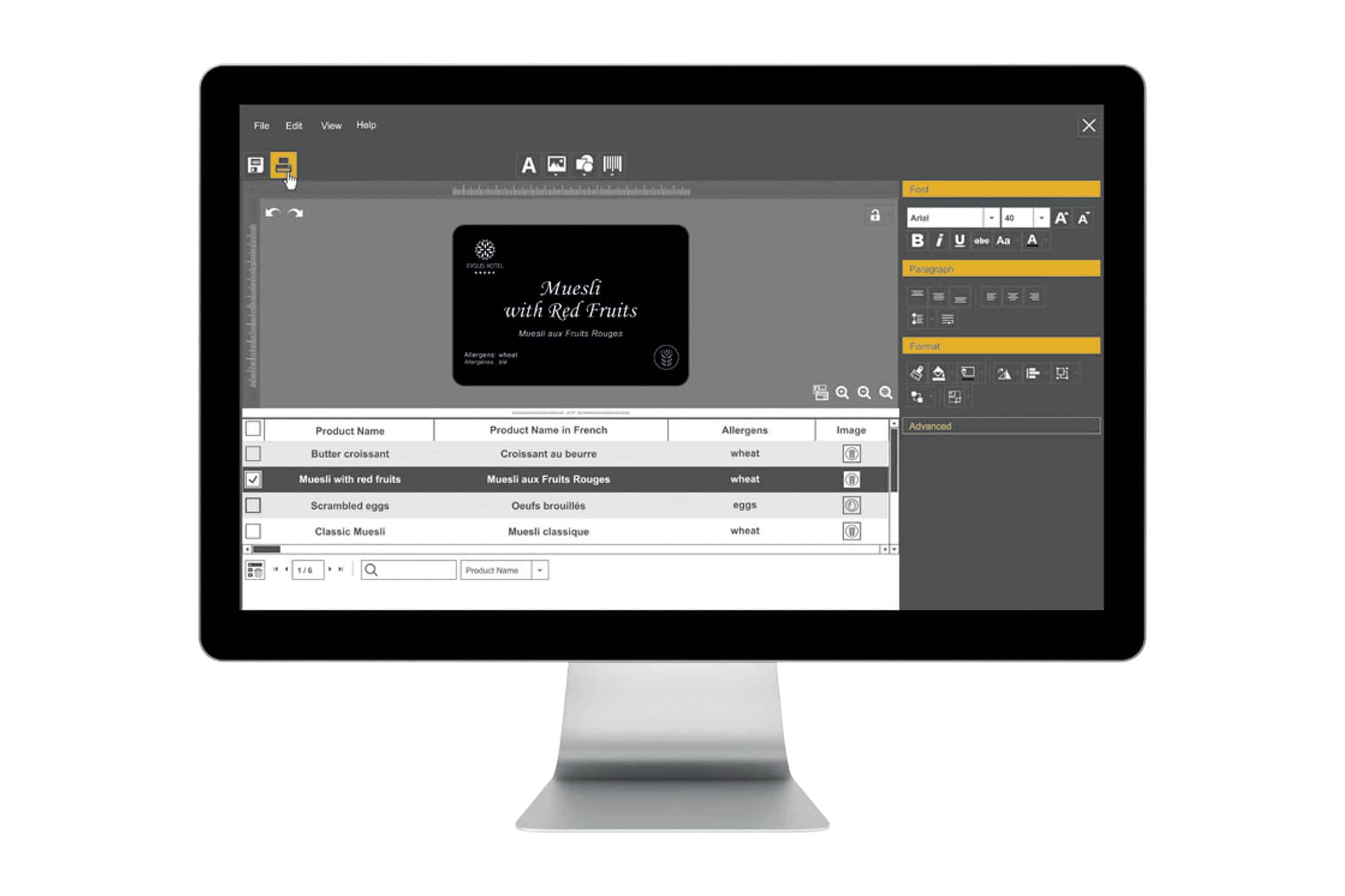 - Un affichage automatique des allergènes directement sur vos étiquettes de buffet